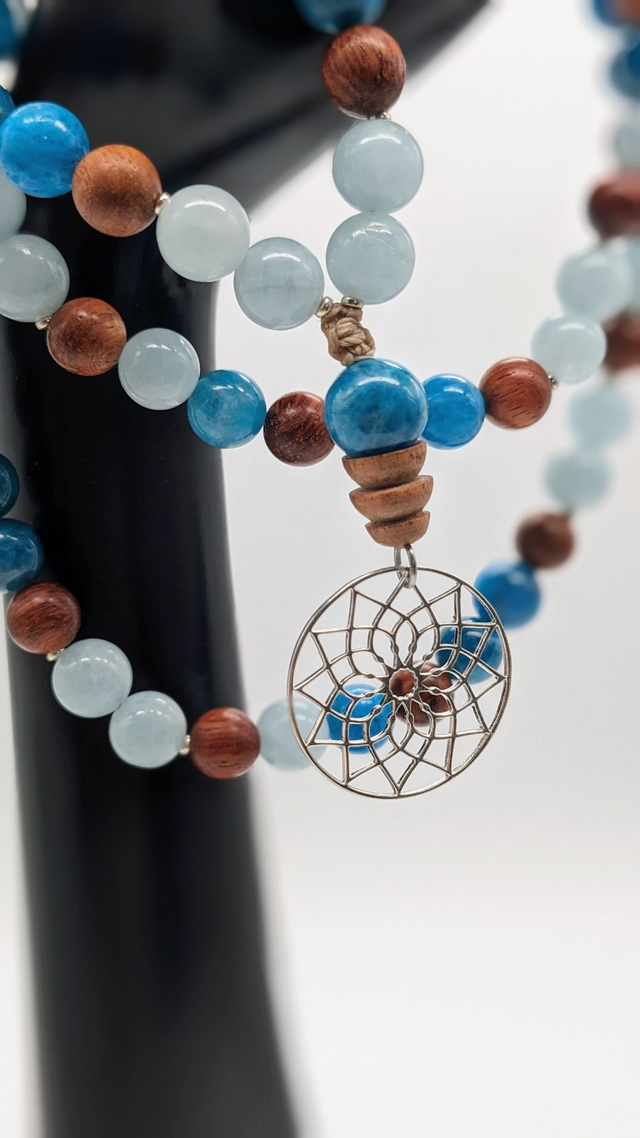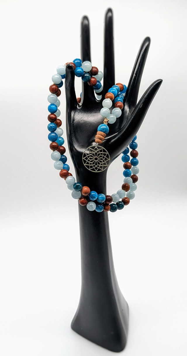 Perles ∅ 8mm : Aigue-marine, apatite, bois de santal